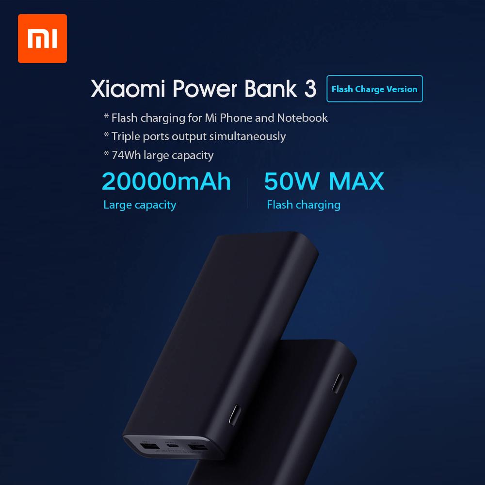 - 74 Wh High Power: 20000mAh Mi 50W Power Bank suitable for air travel